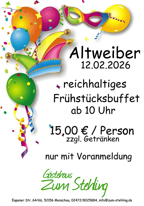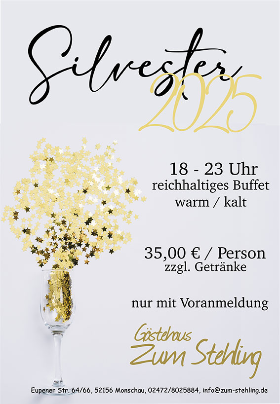 31.12.2025: Restaurant ab 15.00 Uhr geöffnet, abends bieten wir ein Buffet für 35,00 € / Person an, Voranmeldung erforderlich!